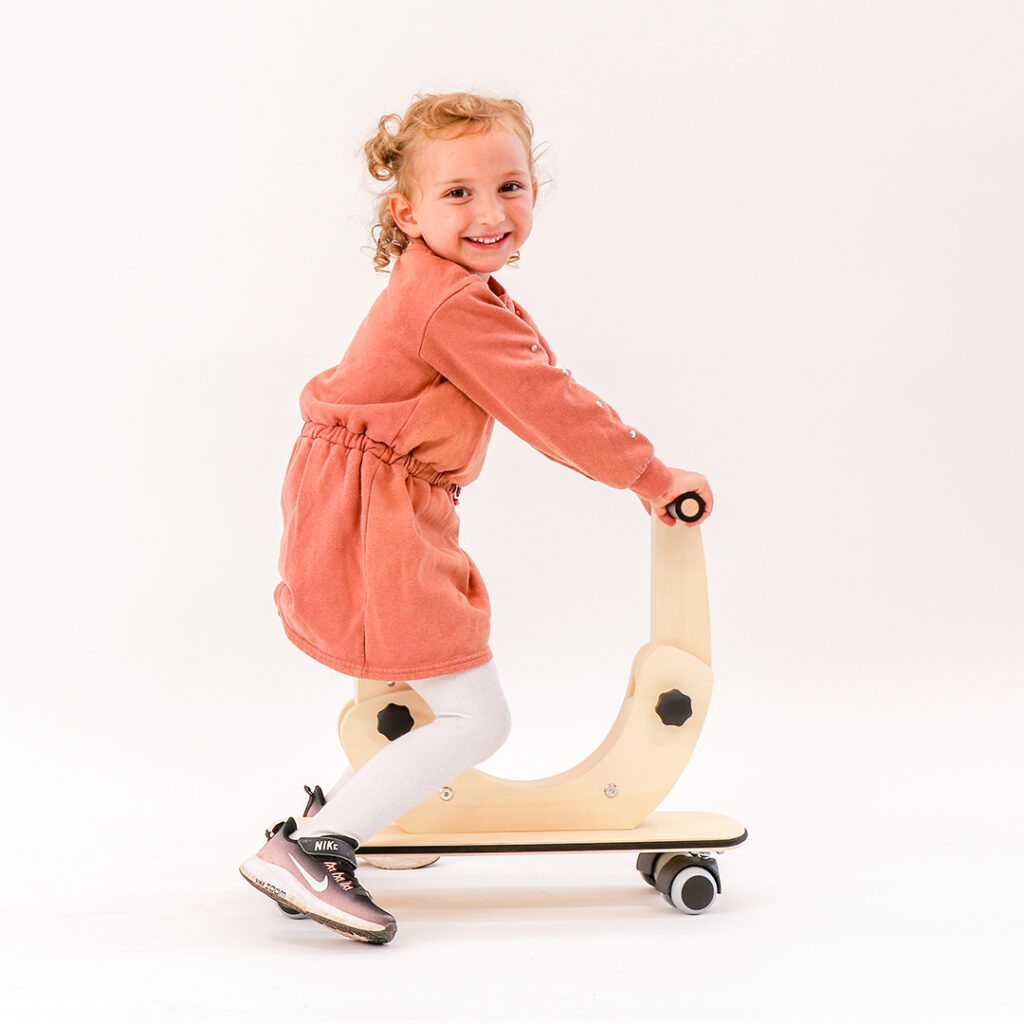 Pri najmlajših je vožnja s takim poganjalcem lahko prva samostojna vožnja v življenju. Trdna in kompaktna lesena konstrukcija pa brez težav prenese zahtevnejšo vožnjo, z vrtenjem in driftanjem, ki jo obvladajo zahtevnejši uporabniki.